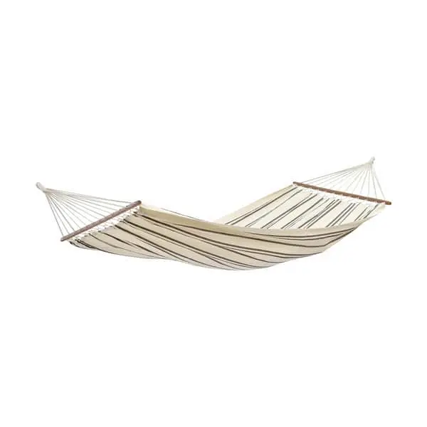 Brasilia Cappuccino fra Amazonas er en brasiliansk premium hængekøje med træstav. Træstav i hårdttræ giver perfekt stabilitet, og med en stofbredde på 140 cm og træstavslængde på 100 cm får hængekøjen en optimal liggeposition, hvor du ligger sikkert og komfortabelt. Ekstra blødt og tætvævet stof giver derudover maksimal komfort, og takket være de mange særligt kraftige ophængssnore får du en jævn vægtfordeling og en følelse af vægtløshed.