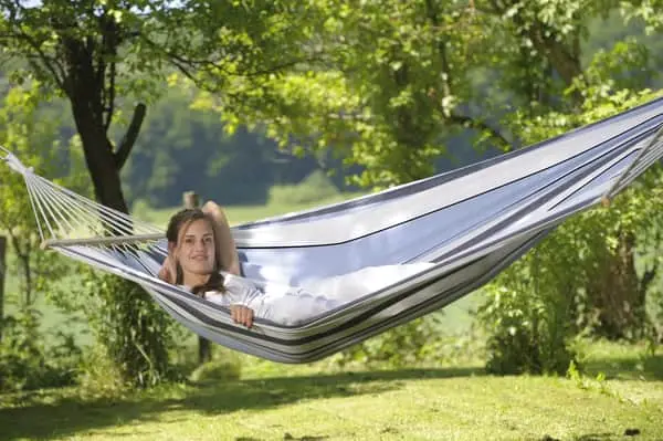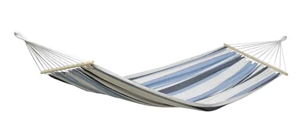 Samba Marine hængekøjen fra Amazonas er en kvalitetshængekøje i kraftigt, holdbart og dejligt blødt stof i flotte nordiske farver. En hængekøje og dit helt eget fristed, der passer ind i ethvert hjem ude som inde. Den er lavet i bomuld og polyester, og med en særlig vejr- og UV-bestandigt EllTex materiale, der er ekstra holdbart. Derudover har den også en træstav i hårdttræ, der giver perfekt stabilitet.