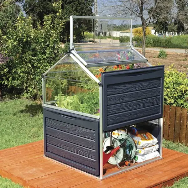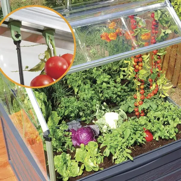 Vores hævede højbed og polycarbonat drivhus er den ultimative løsning til at skabe din egen økologiske grøntsagshave. Med en behagelig arbejdshøjde og opbevaringsrum til haveudstyr under højbedet, er det enkelt og nemt at tage sig af din have. Den fuldt kontrollerede enhed gør, at du kan regulere jord, vand, temperatur og fugtighed, og de 2 dybe plantebakker reducerer mængden af jord, du skal at bruge. Alt dette, sammen med beskyttelse mod snegle, skadedyr, kæledyr og uvejr, gør vores løsning til den ultimative vækstløsning til altaner, gårdhaver og terrasser. Med justerbare låg og en nem og enkel montering, kan du nemt skabe din egen vellykkede grøntsagshave.
