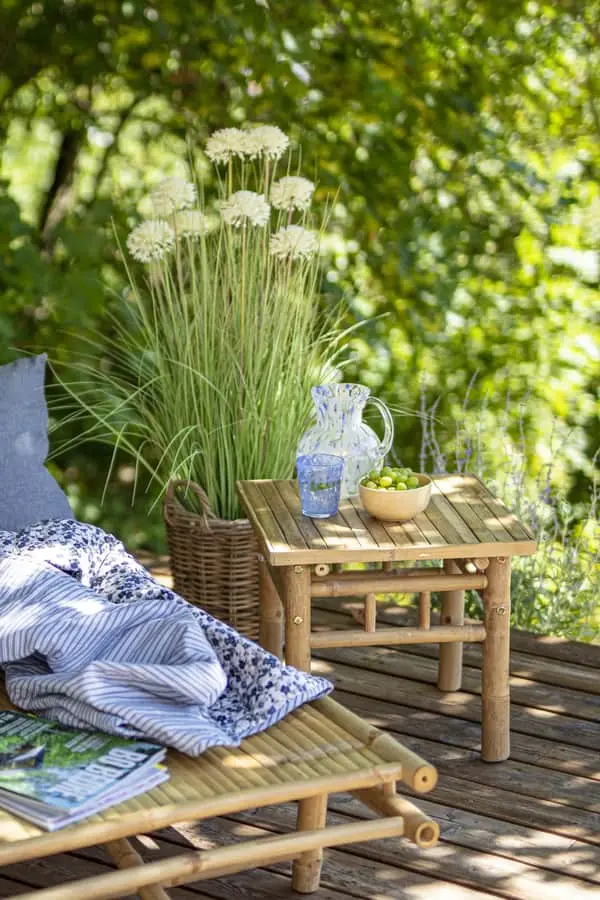 Det hyggelige bambusbord fra CASA Living står perfekt i det udendørs loungeområde om sommeren. Bambus giver et nyt og friskt pust til indretningen og skaber en rar atmosfære.