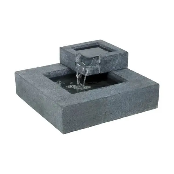 Fontænen er formet som to firkantede kar, og er perfekt til at skabe en fredfyldt lille oase med plads til ro og fordybelse.