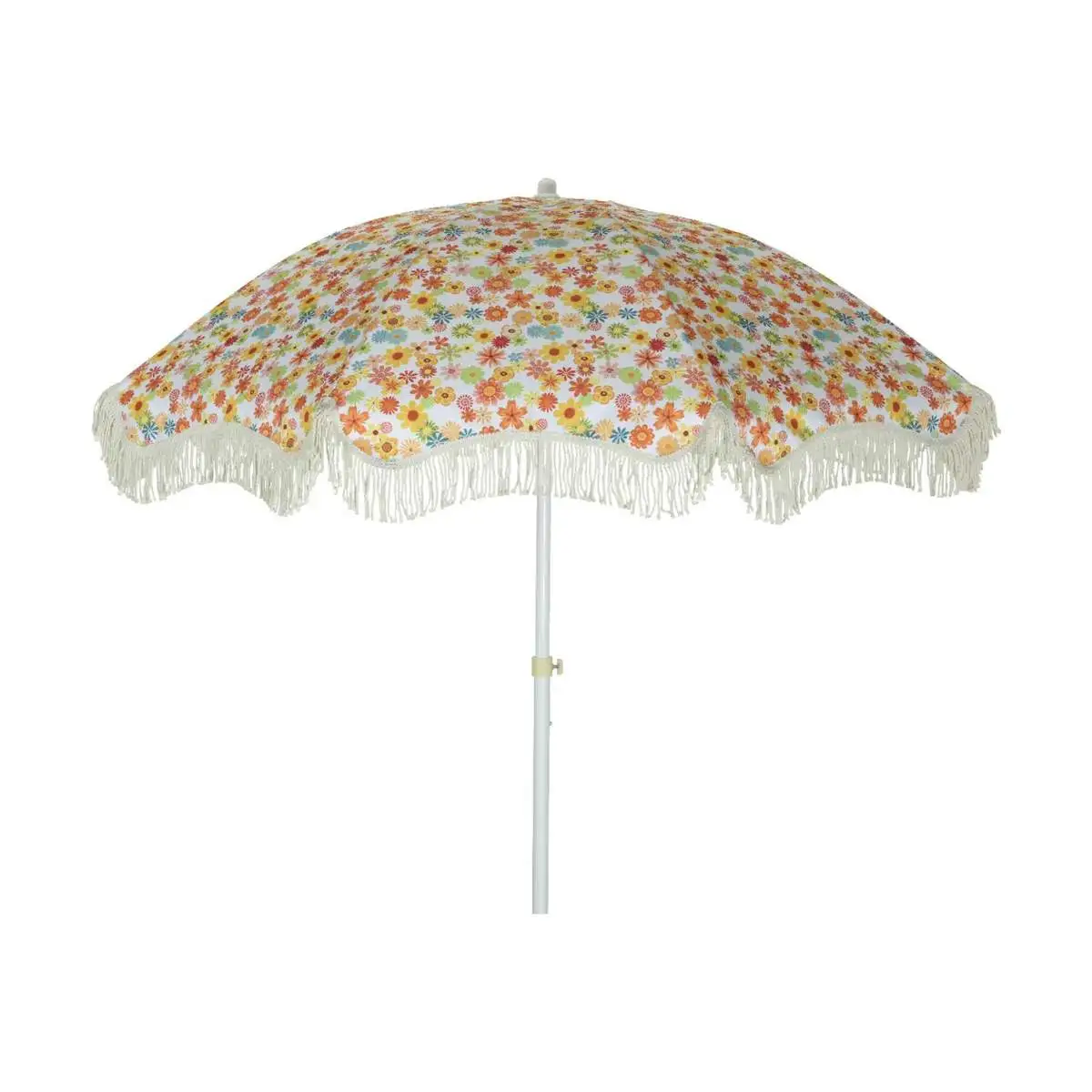 Brug den farverige parasol, som har en smart tilt-funktion, der giver dig mulighed for at justere og dreje parasollen samt skabe skygge, præcis dér hvor du ønsker. Parasollen er med frynser, vandafvisende og fremstillet i polyester.