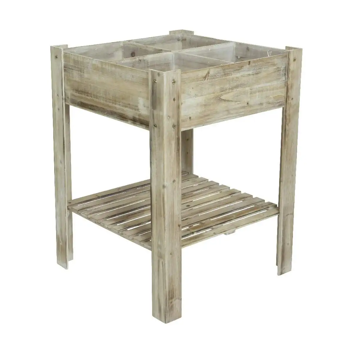 Plantekassen har 4 rum og en hylde, hvilket gør det til et multimøbel med plads til at opbevare en lille vandkande, havehandske eller en lille havesaks, når du skal klippe lidt krydderurter til madlavningen. Kassen har plastindlæg.