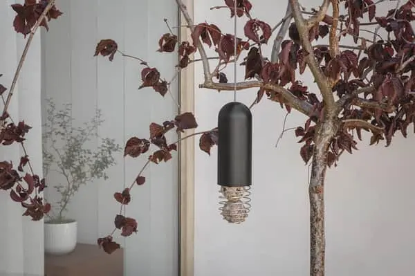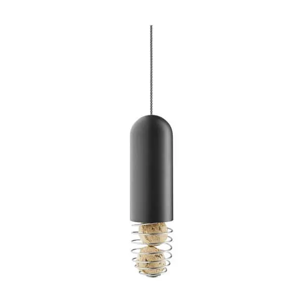 Med den hængende mejsekugleholder fra Eva Solo har havens fugle nem adgang til mejsekuglerne, og de store fugle kan ikke flyve væk med maden. Mejsekugleholderen har plads til tre kugler, og det er nemt at se, hvornår den skal fyldes op. Du løfter bare den sorte overdel, og kan nemt montere den med snor, f.eks. i et træ eller et udhæng ud for dit vindue, så du kan følge fuglenes aktivitet.