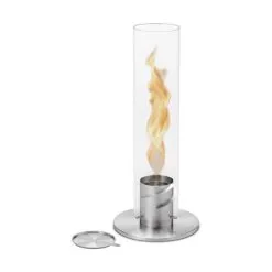 Det prisvindende design gør, at indgangsluften får flammen til at rotere. Ved hjælp af termiske kræfter og glassets skorstenseffekt boostes flammen med 500%. Med Spin biopejsen fanger du den umiskendelige feel-good-effekt af et lejrbål i en glascylinder. Den roterende flamme brænder fuldstændig lugtfri og sodfri med Höfats bioethanol gel. Höfats bioethanol gel kan endda bruges indendørs, og med den er du på den sikre side i enhver henseende. Den naturlige alkohol er nemlig lavet af vedvarende råvarer, og brænder uden sod eller røg. Det eneste der er tilbage, er en afslappet, hyggelig atmosfære! Find det perfekte Spin til dig – den mindre version af Spin har en glascylinder på 40 cm og brændetid på ca. 60 min., imens den større version af Spin fylder lidt mere, men tager effekten til det yderste med en glascylinder på 54 cm og en brændetid på op til 80 min. Hvilken version passer bedst til dig? Der medfølger en slukningshætte der kvæler flammen og en genopfyldningsbeholder.