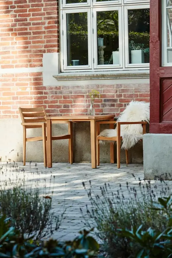 Cambridge havebordet er udført i massivt bæredygtigt teaktræ med aftagelige ben og lav sarg, så du kan skubbe dine havestole med armlæn ind under bordet. Med et klassisk og enkelt design kan du bruge bordet både i haven, på terrassen eller altanen.