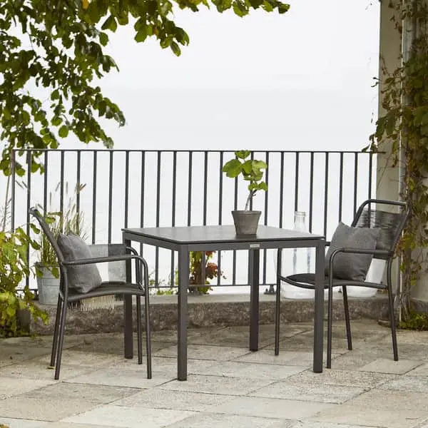 Dæk op til en lækker frokost på terrassen med Elba Verona havemøbelsættet fra Mandalay. Sættet består af et Elba bord og to Verona stole.