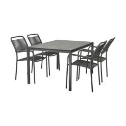 Dæk op til en lækker frokost på terrassen med Elba Verona havemøbelsættet fra Mandalay. Sættet består af et Elba bord og fire Verona stole.
