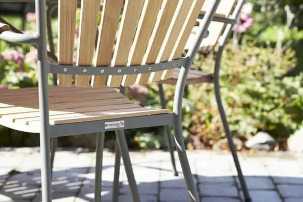 Mandalays Marguerit havemøbler er fremstillet af A-kvalitet teaktræ, der er SLVK Certificeret, hvilket garanterer for bæredygtighed ved sporbarhed og genplantning. Produktionen af træet er certificeret under EU’s FLEGT-ordning for bæredygtig og lovlig skovdrift. Stolen har rustfrit stel i pulverlakeret aluminium.