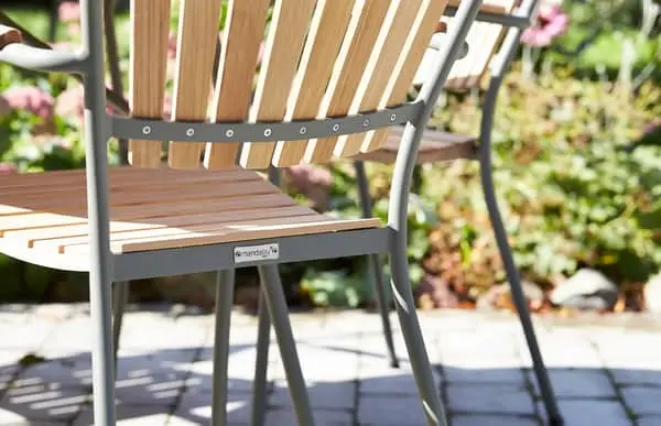 Mandalays Marguerit havemøbler er fremstillet af A-kvalitet teaktræ, der er SLVK Certificeret, hvilket garanterer for bæredygtighed ved sporbarhed og genplantning. Produktionen af træet er certificeret under EU’s FLEGT-ordning for bæredygtig og lovlig skovdrift. Stolen har rustfrit stel i pulverlakeret aluminium.
