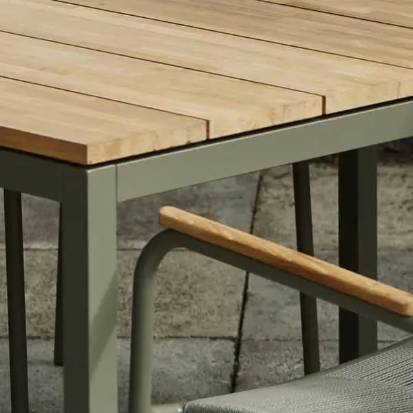 Mandalays havemøbler er fremstillet af A-kvalitet teaktræ, der er SLVK Certificeret, hvilket garanterer for bæredygtighed ved sporbarhed og genplantning. Produktionen af træet er certificeret under EU’s FLEGT-ordning for bæredygtig og lovlig skovdrift. Bordet har aluminiumsstel, der er pulverlakeret og rustfrit.