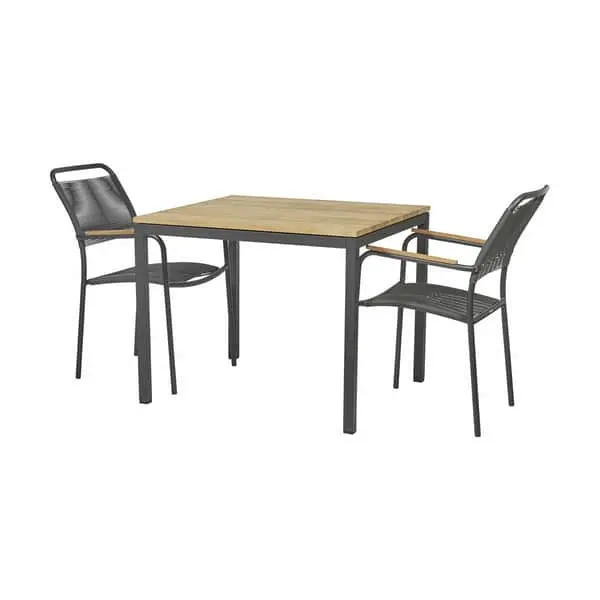 Med dette sæt på terrassen får du det bedste ud af sommeren. Indtag morgenmaden, frokosten og aftensmaden ved bordet. Det er også det helt rigtige sted til alle de øvrige hyggestunder – brætspil, isspisning eller hvad du nu har lyst til.