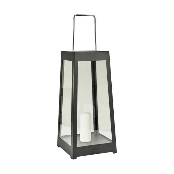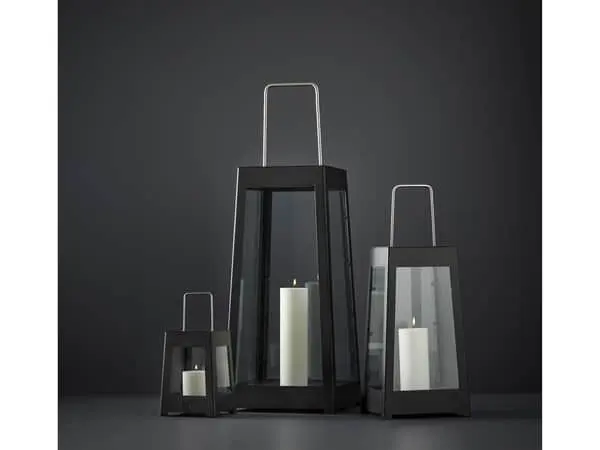 Lanternes enkle og stilrene design er fremstillet i pulverlakeret jern med en hank i børstet rustfrit stål. Det giver dig et smukt pejlemærke i mørket – perfekt til de mange hyggelige sommeraftener.