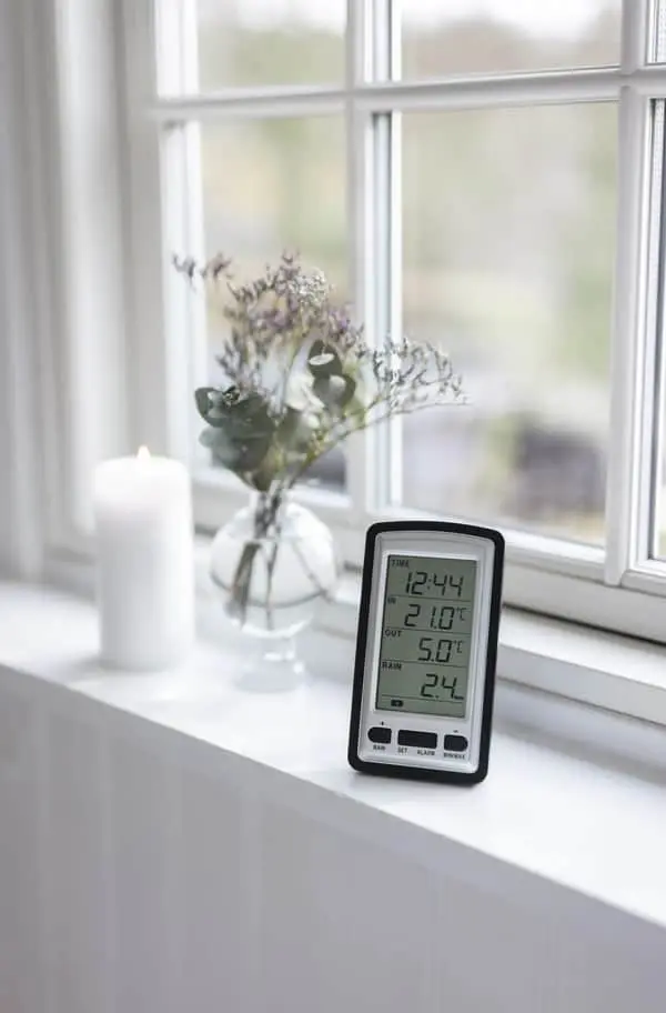 Regnmåleren har sender, så du kan stille displayet på sengebordet, og samtidig holde øje med inde- og udetermometer og nyde godt af radiostyret ur med dato og alarm.