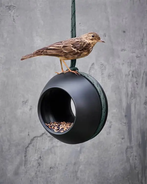 Denne foderkugle er en del af Rosendahl Reduce, som er produkter med en ambition om “at gøre bæredygtig design tilgængeligt for alle”. Birds-serien er lavet af genbrugsplast, som er indsamlet fra danske husholdninger, mens også hele produktionen foregår i Danmark.