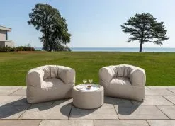 Den traditionelle loungestol fra Skagen Living er designet af Bertil stam, og passer perfekt sammen med det lille havebord i samme serie.