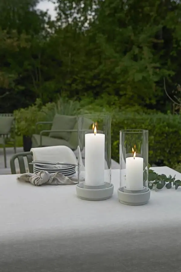 Kan bruges både indendørs og udendørs Rengøres med varmt vand og evt. mildt opvaskemiddel Passer til både store og små lys samt fyrfadslys