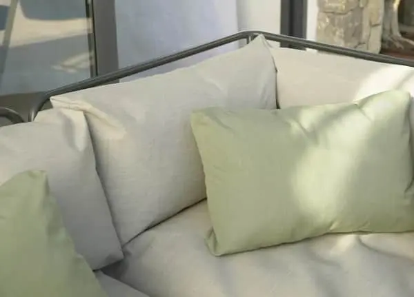 Med et stel af pulverlakeret, rustfrit stål og fantastisk lækkert stof, der er både vandafvisende, UV- og aleresistent kan du helt selv sammensætte din lounge akkurat som du ønsker det. Fyldet i hynderne er lavet af en blanding af silikone og EPS-kugler, så du er sikret en fyldig og behagelig siddeoplevelse.