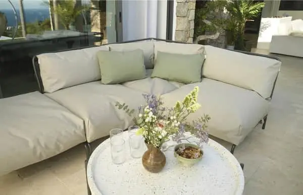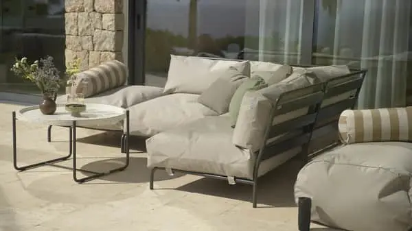 Med et stel af pulverlakeret, rustfrit stål og fantastisk lækkert stof, der er både vandafvisende, UV- og aleresistent kan du helt selv sammensætte din lounge akkurat som du ønsker det. Fyldet i hynderne er lavet af en blanding af silikone og EPS-kugler, så du er sikret en fyldig og behagelig siddeoplevelse.