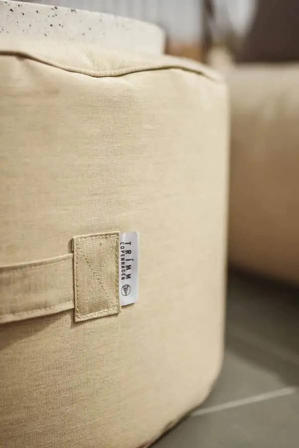 Med sin runde form er denne puf fra TRIMM Copenhagen nemt at bruge på mange forskellige måder – den kan fx bruges som loungebord, ekstra siddeplads eller fodstøtte.